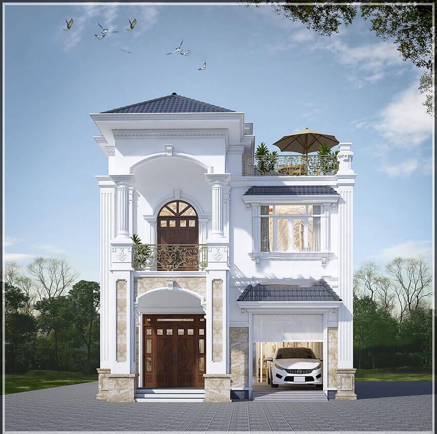 Mẫu biệt thự cổ điển đẹp 2 tầng mái thái này cũng là một trong những kiểu nhà được nhiều người yêu thích. Quy mô 2 tầng vừa mang đến sự tiện nghi, thoải mái mà không tốn quá nhiều chi phí xây dựng.