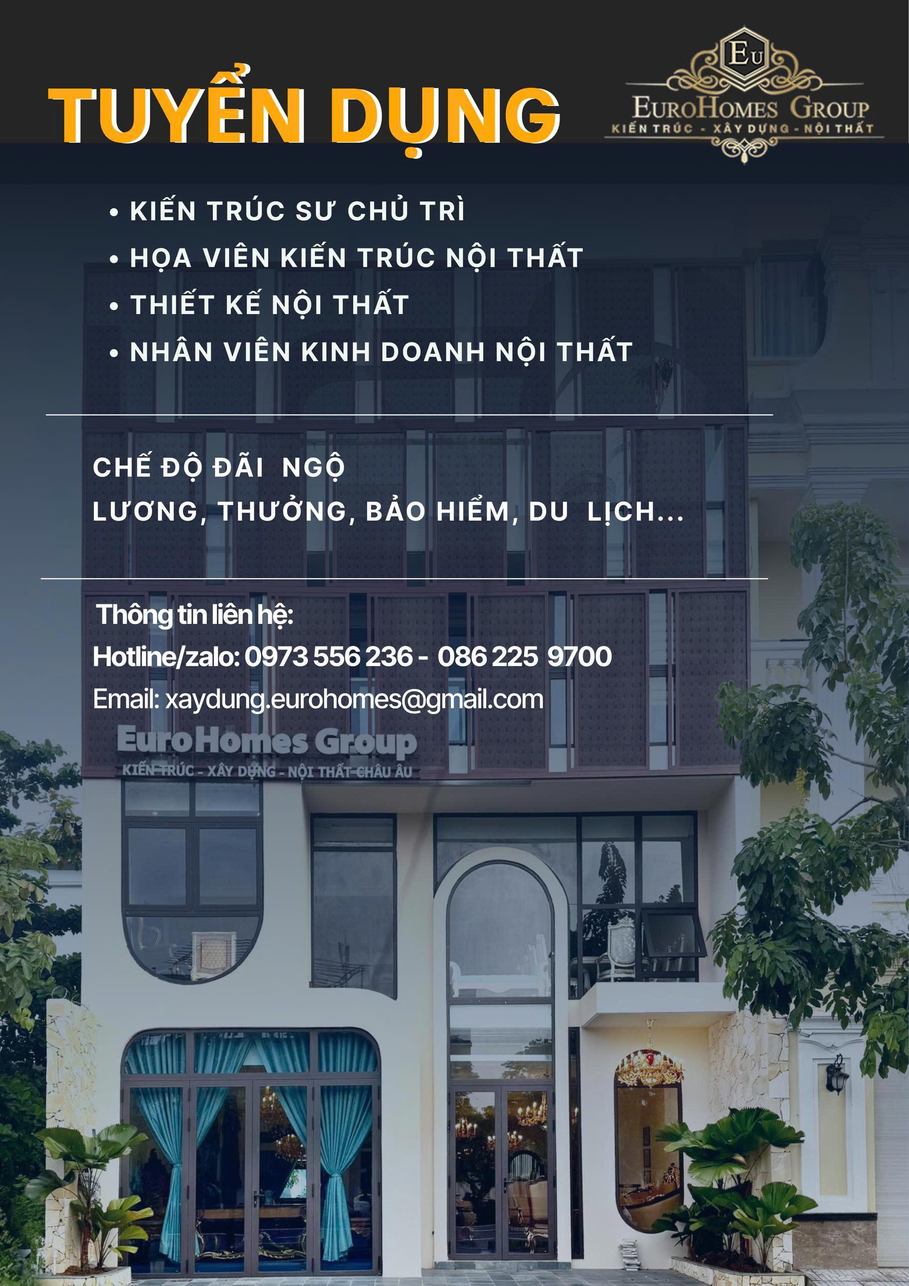 Eurohomes Group – thương hiệu uy tín trong lĩnh vực thiết kế, thi công xây dựng và nội thất cao cấp. Chúng tôi đang tìm kiếm đồng đội mới, đồng hành cùng Eurohomes để mang đến những công trình nội thất sang trọng và đầy giá trị cho khách hàng.