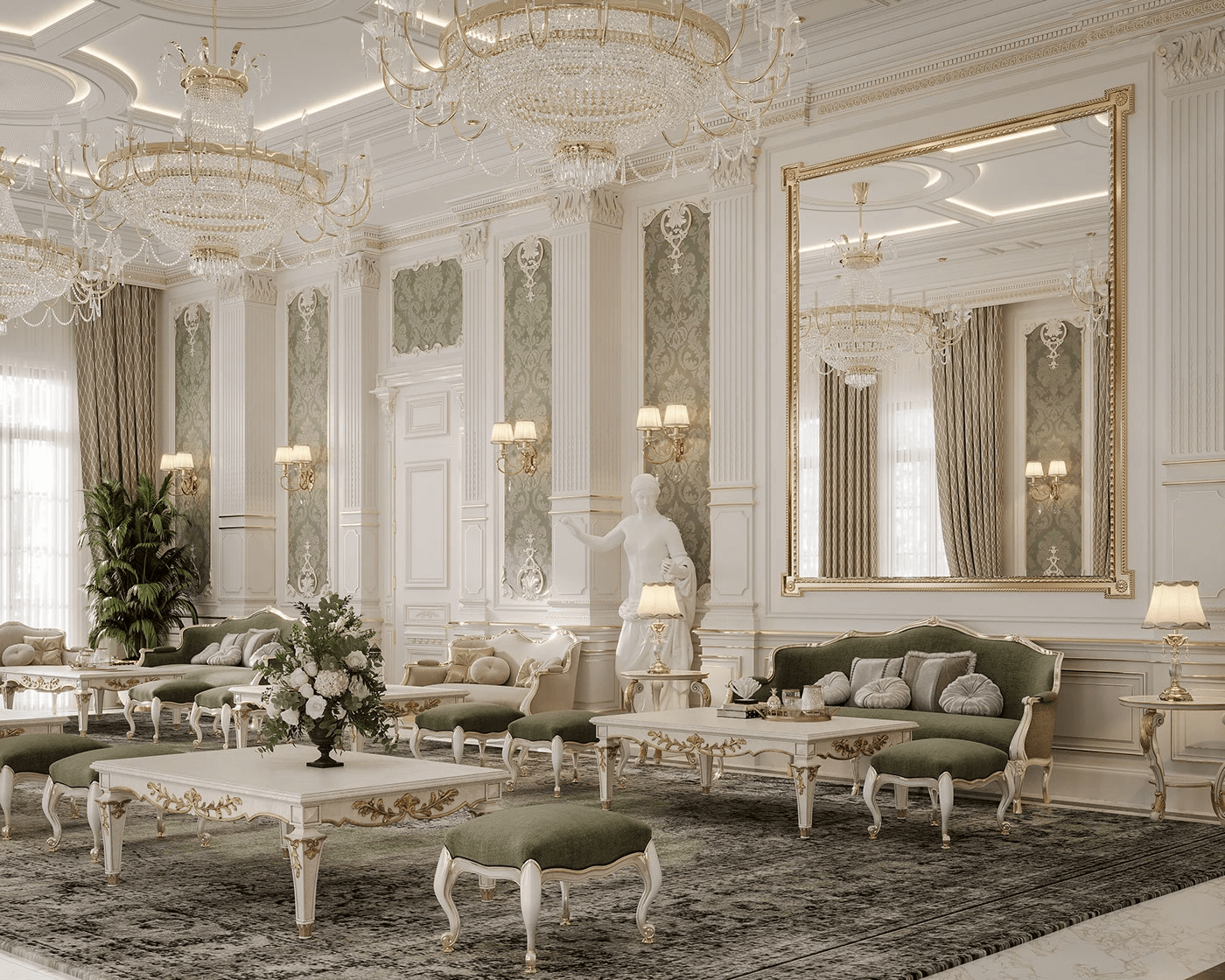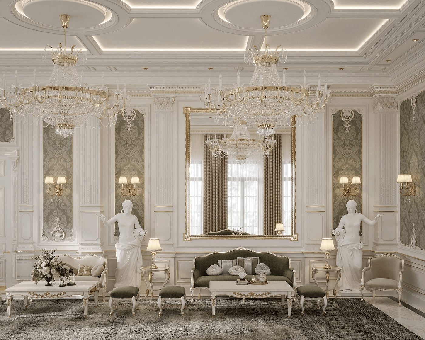 Thiết kế nội thất phòng khách biệt thự tân cổ điển Pháp