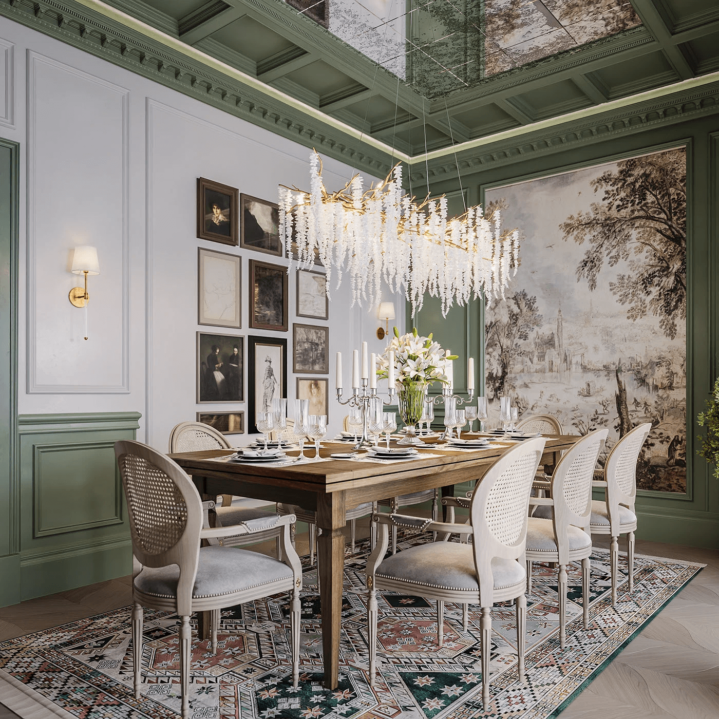 Thiết kế nội thất phòng ăn biệt thự tân cổ điển