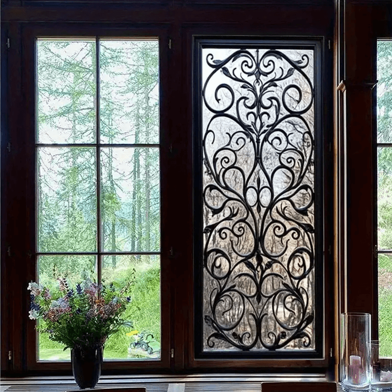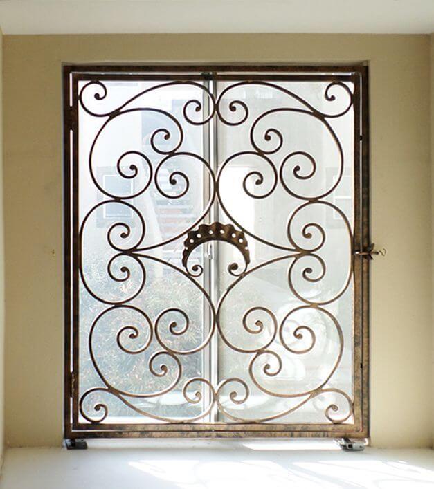 Chất liệu sắt mỹ thuật với những đường cong mềm mại giúp công trình trở nên sang trọng hơn rất nhiều. Sắt mỹ thuật kết hợp với kính được xem luôn được yêu chuộng khi vừa đảm bảo thẩm mỹ lẫn công năng cho thiết kế cửa sổ 2 cánh hoa sắt.