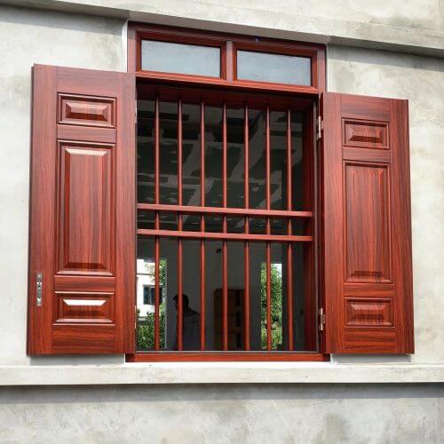 Cửa sổ được thiết kế nhiều cánh đón nhận ánh sáng thiên nhiên vào bên trong dễ dàng đặc biệt chất liệu bằng gỗ tự nhiên với gam màu đỏ cửa gỗ cảm nhận được sự ấm áp. Chất liệu gỗ tự nhiên luôn có một vẻ đẹp “tự nhiên sẵn có” đến từ những vân gỗ mà không chất liệu nào thay thế được.