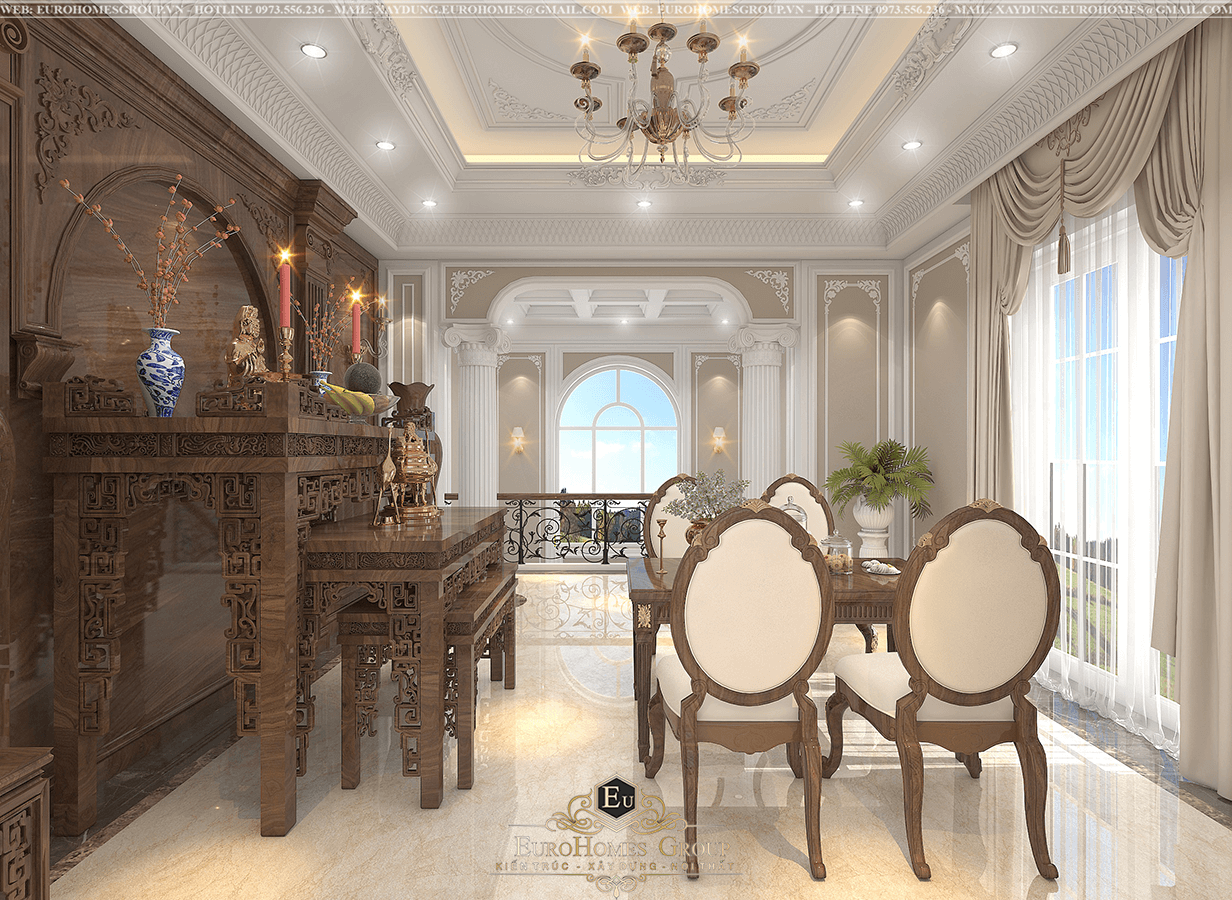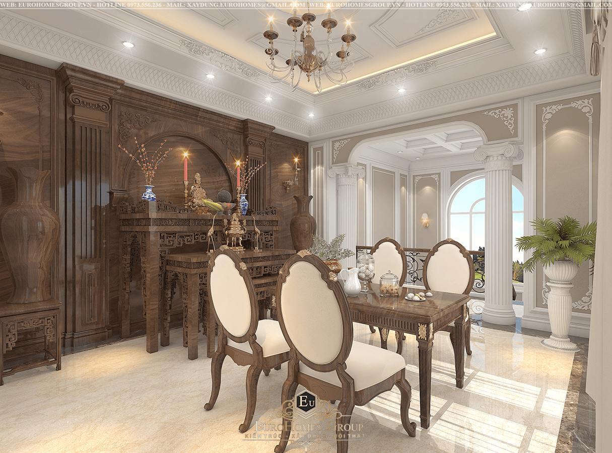Thiết kế nội thất phòng thờ biệt thự 2 tầng 3 gian