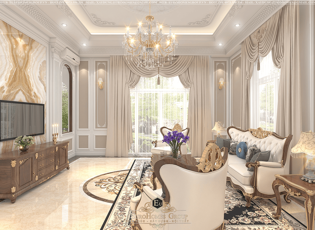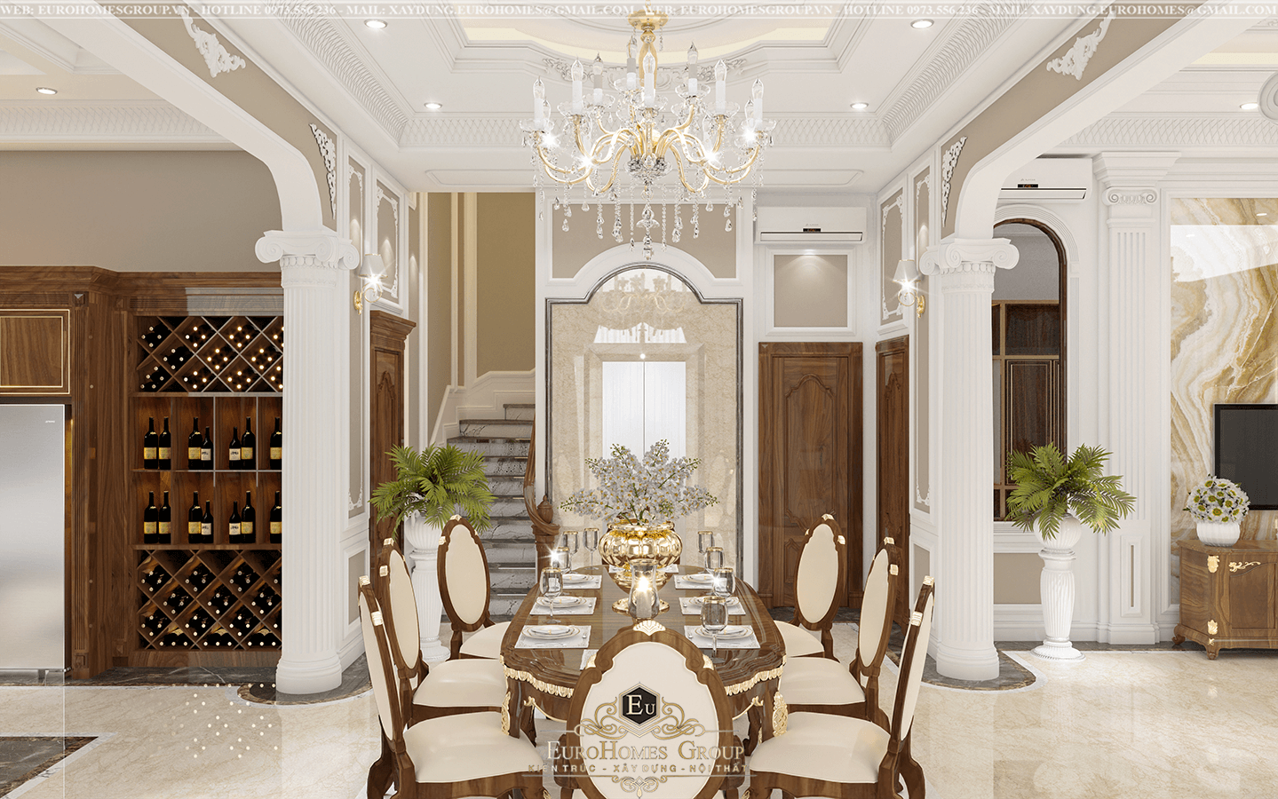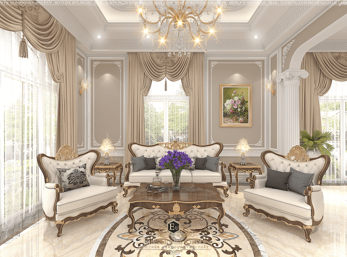 Thiết kế nội thất biệt thự 2 tầng 3 gian phong cách tân cổ điển
