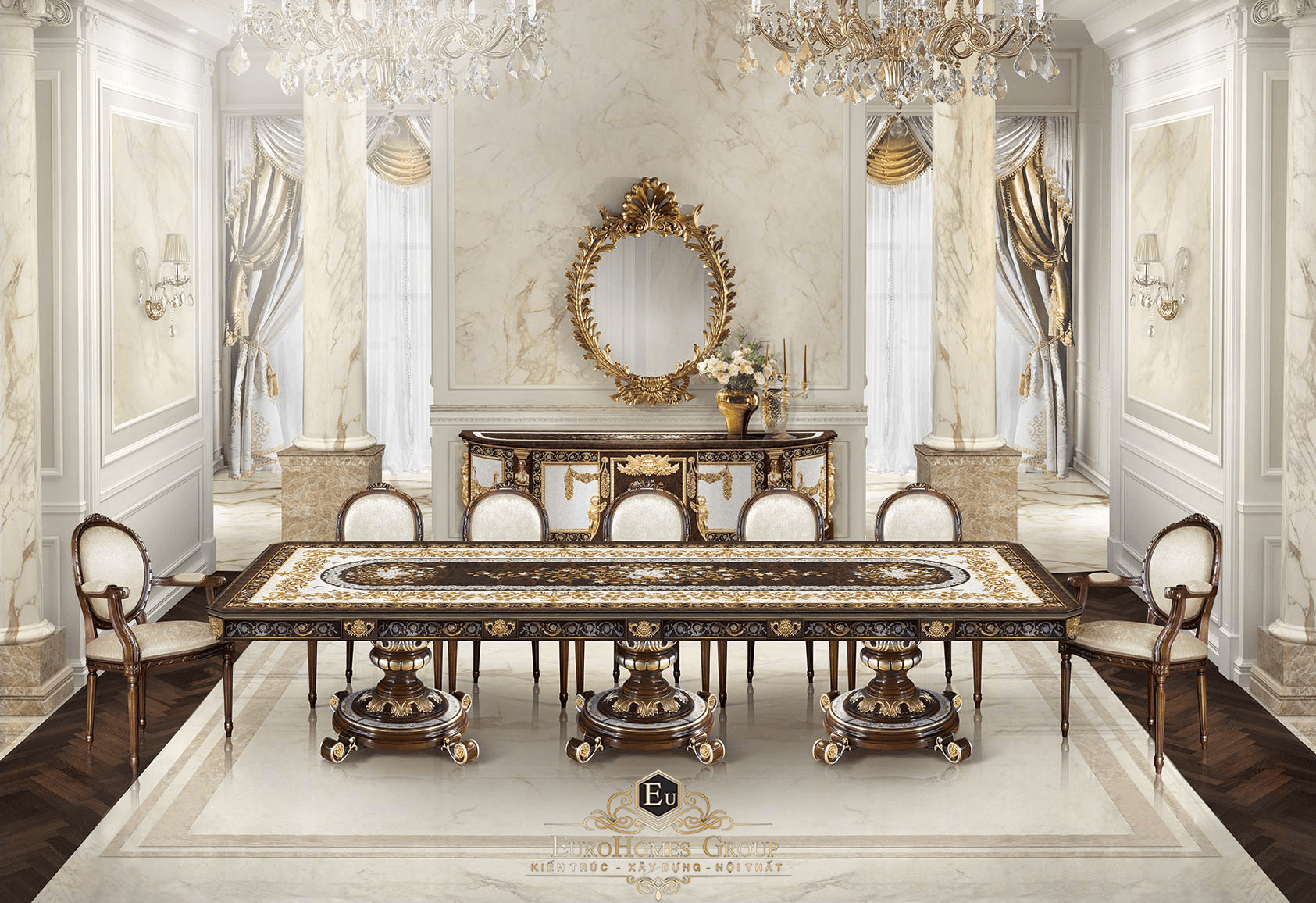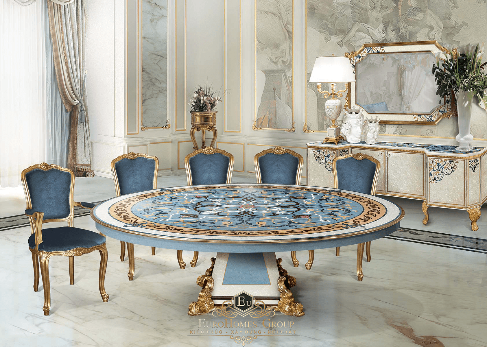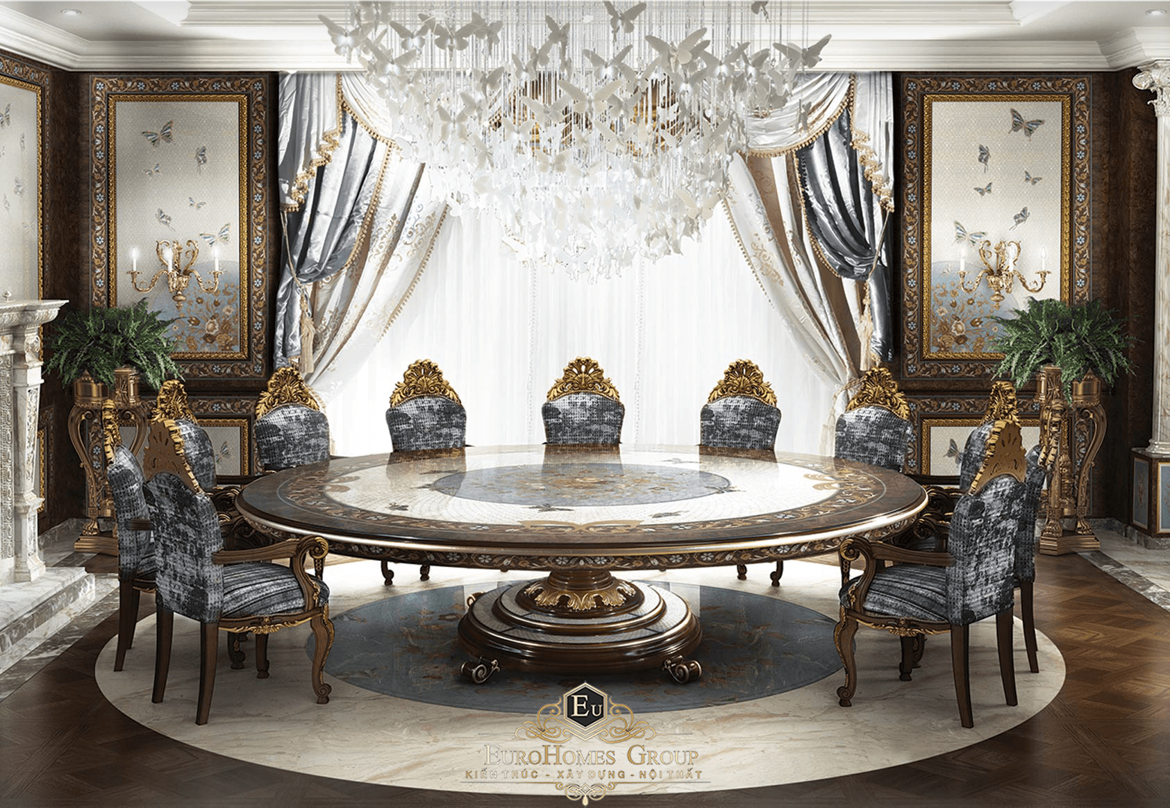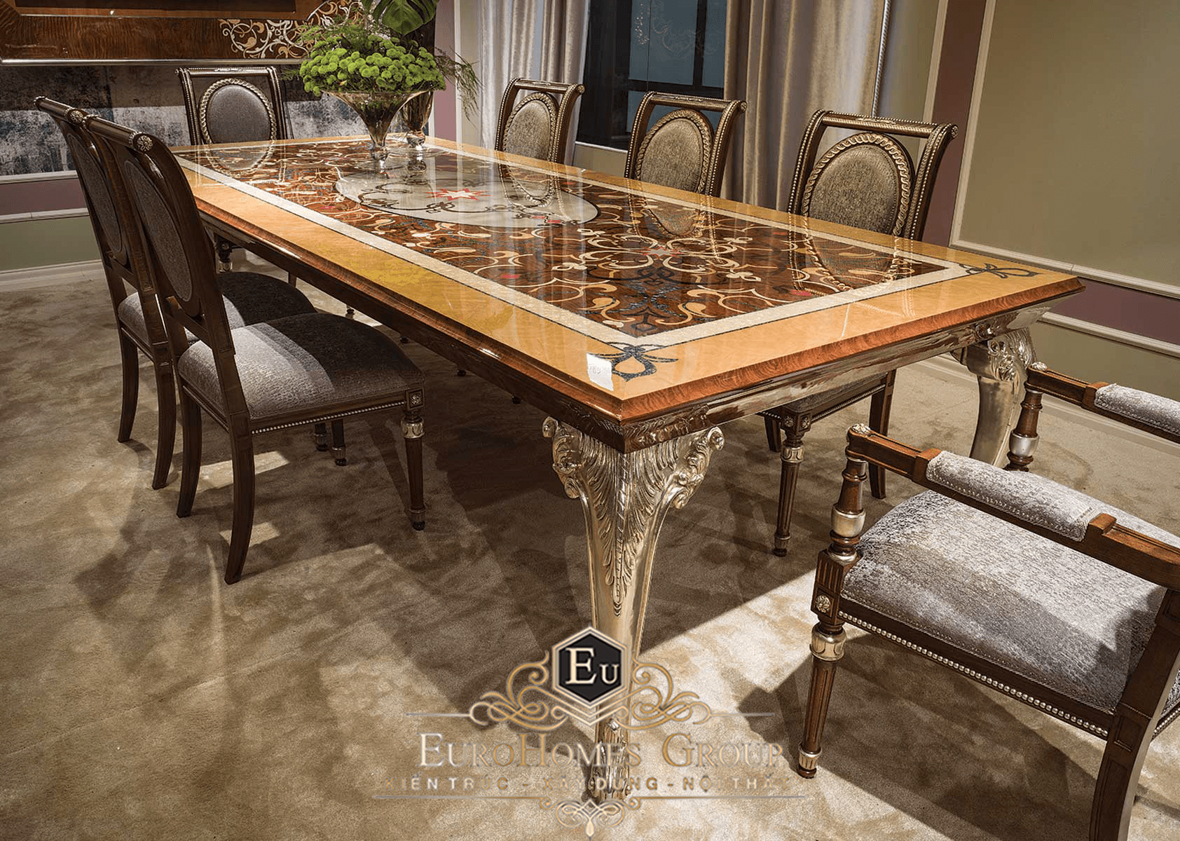 Đây không chỉ là một bộ bàn ghế ăn tân cổ điển cao cấp, mang đến không gian biệt thự sang trọng, mà còn là không gian thể hiện gu thẩm mỹ và phong cách sống đẳng cấp của gia chủ.
