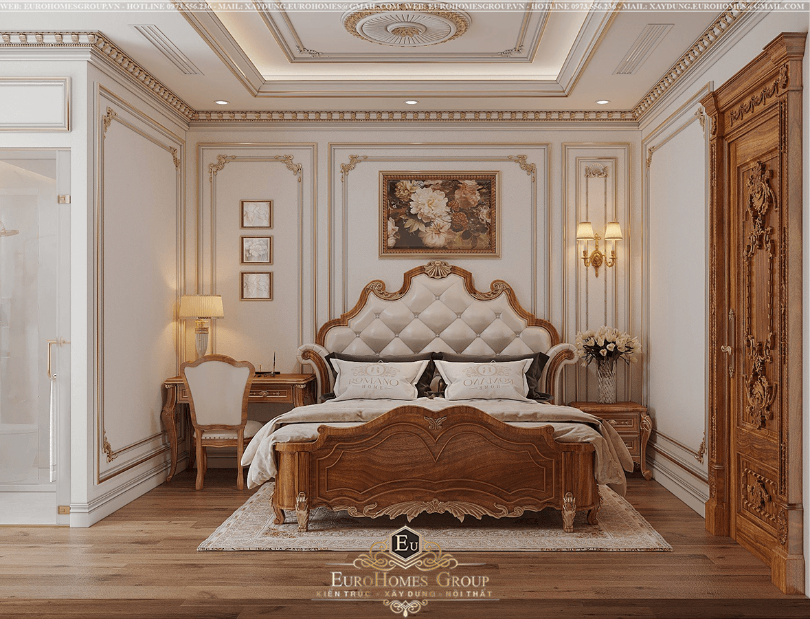 Thiết kế nội thất phòng ngủ biệt thự 1 tầng tân cổ điển châu Âu