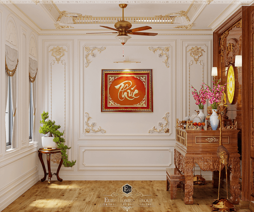 Thiết kế nội thất phòng thờ tân cổ điển sang trọng