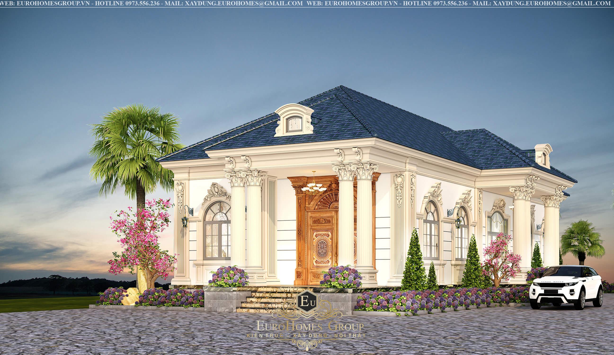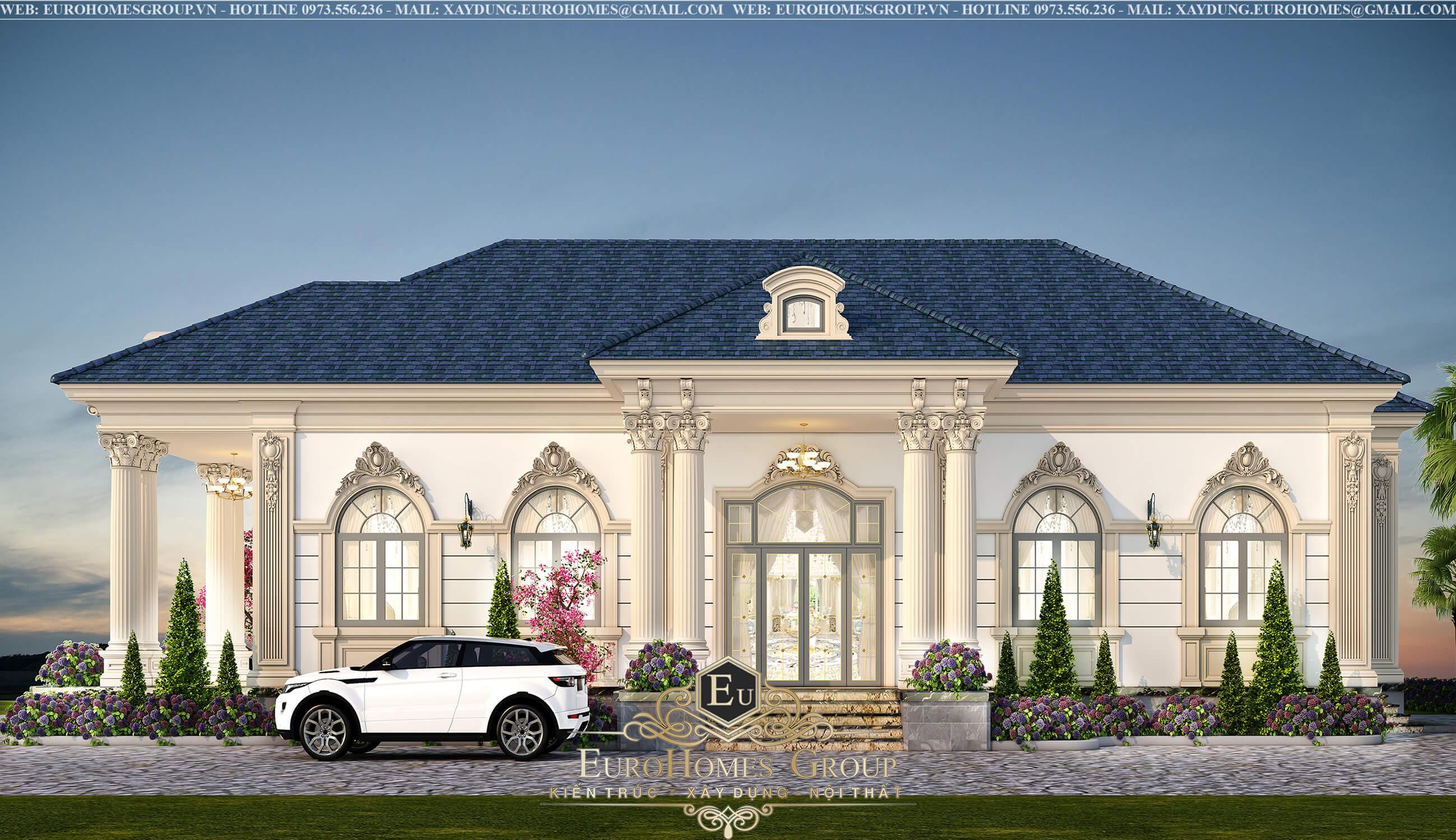 Nếu gia chủ đang ấp ủ ước mơ về một biệt thự 1 tầng tân cổ điển sang trọng, tinh tế và chuẩn phong cách tân cổ điển châu Âu, hãy để công ty thiết kế xây dựng Eurohomes Group đồng hành cùng gia chủ từ bản vẽ đầu tiên cho đến khi công trình hoàn thiện, sẵn sàng chào đón những phút giây an yên bên gia đình.