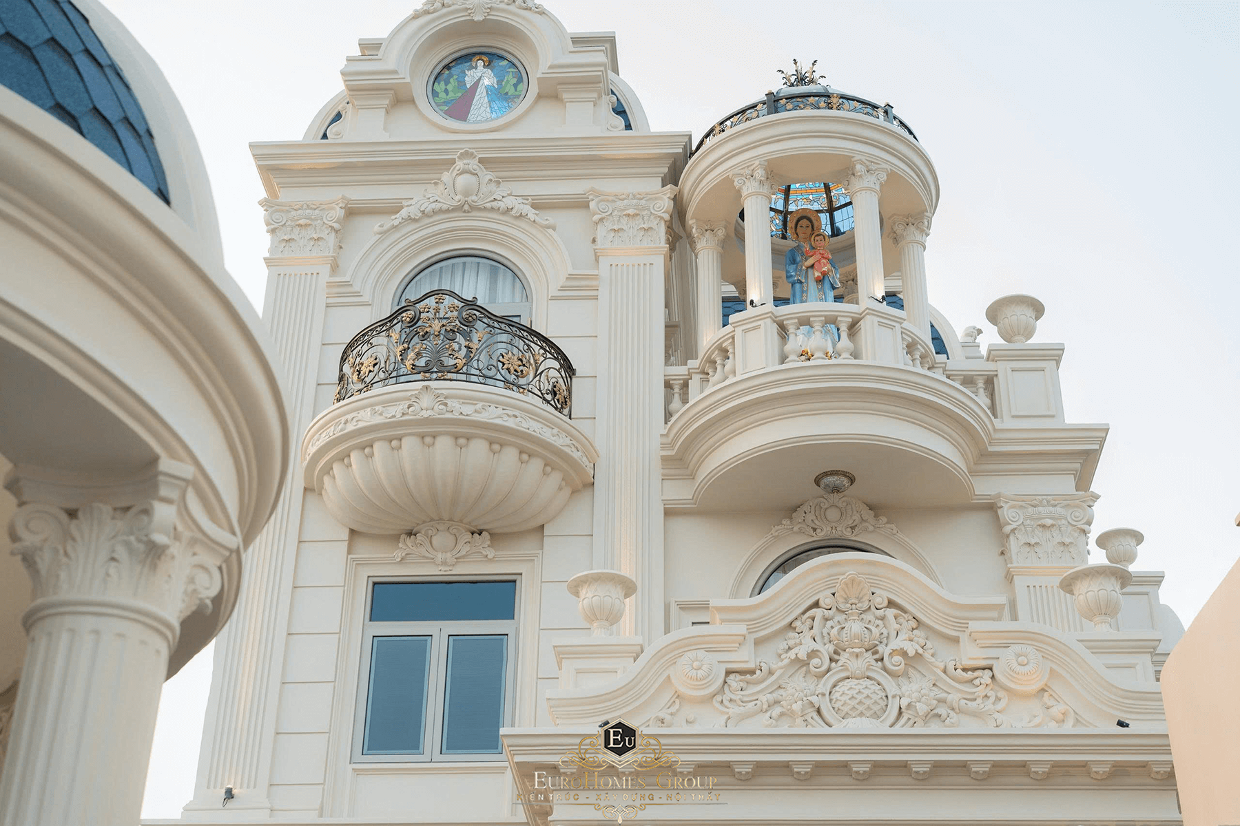 Hệ mái mansard cùng hệ vòm, ban công được thiết kế đồng điệu để tạo nên những tác phẩm tuyệt đẹp.